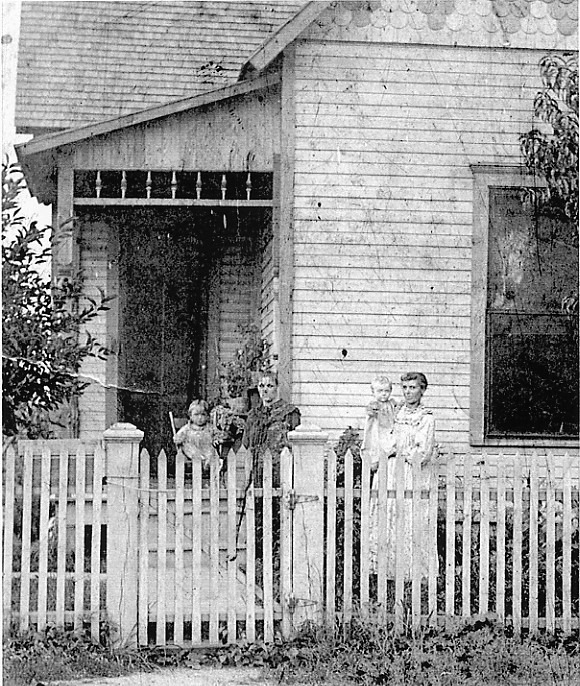 This is my great grandmother Ella Smith Niblick holding her son Jesse Albert Niblick. My grandfather Clinton Elmer Niblick is sitting on the porch. The other woman is Savill Smith, wife of William Smith, the brother of Ella.