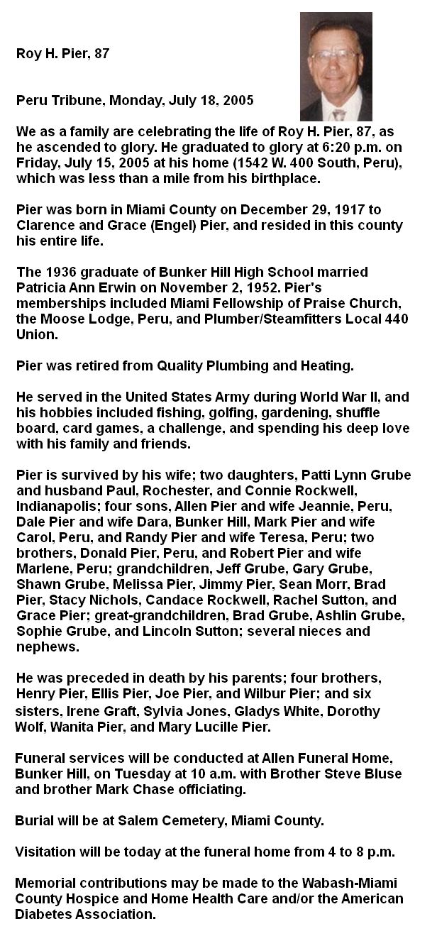 PIERRoy H    29 Dec 1917 15 Jul 2005 US ARMY WWII 87