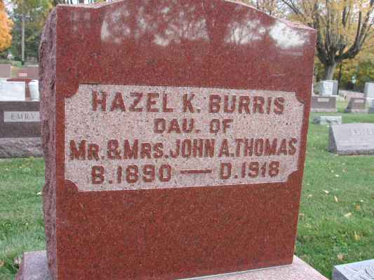 BURRISHazel Keturah  Thomas  24 Nov 1890 26 Oct 1918 28 Oct 1918  27  2nd Add; Sec 1 009  1