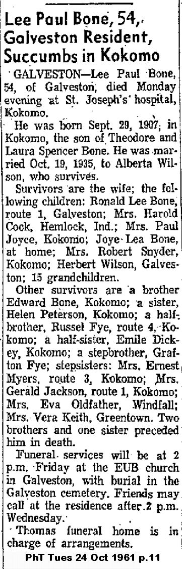 BONELee P.    9 Sep 1907 23 Oct 1961 27 Oct 1961  54  4th Add; Sec 2 076  1