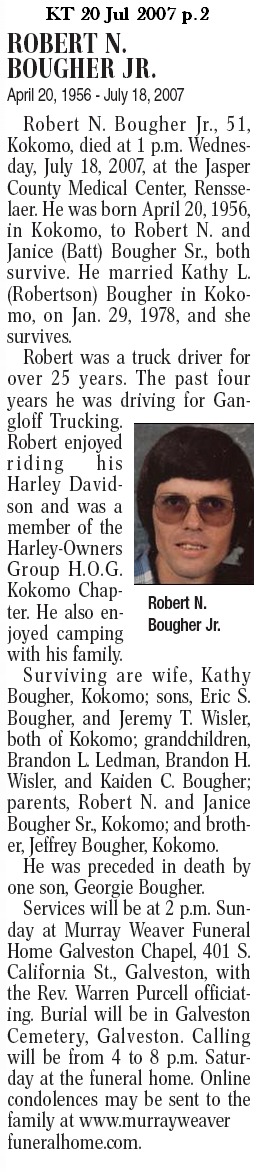 BOUGHERRobert N (Jr.)   20 Apr 1956 18 Jul 2007 22 Jul 2007  51  7th Add Sec 1 228  3