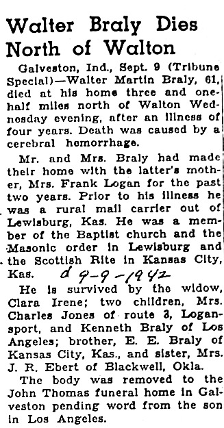 BRALYWalter Martin    18 Jan 1881 9 Sep 1942 13 Sep 1942  61  3rd Add; Sec 1 149  3