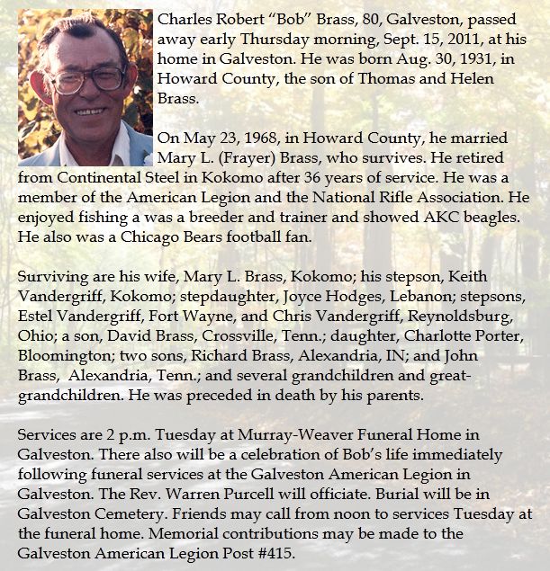 BRASSCharles Robert "Bob"    30 Aug 1931 15 Sep 2011 20 Sep 2011  80  7th Add Sec 1 300  1