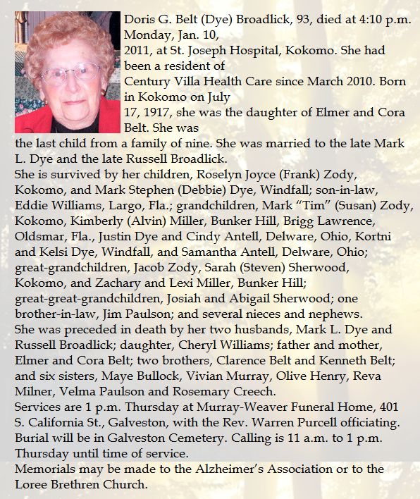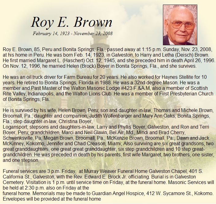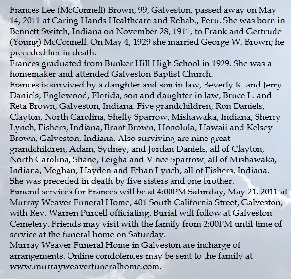 BOYER BROWNHelen V. See: Brown Brock  5 Feb 1923 28 Mar 2011 31 Mar 2011  88  4th Add; Sec 1 020  4