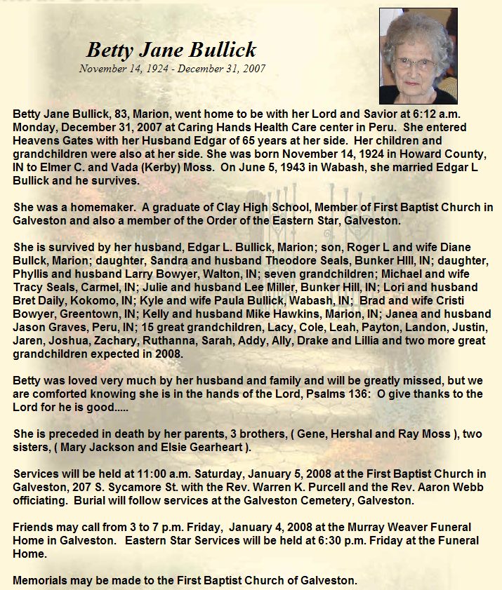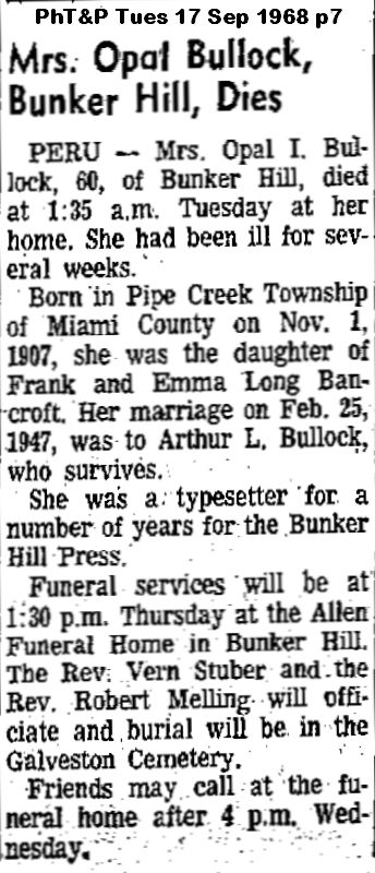 BULLOCKOpal I.    1 Nov 1907 17 Sep 1968 20 Sep 1968  60  1st Add; Sec 1 045  5