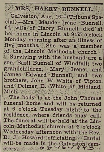 BUNNELLMaude I.    25 Jul 1879 16 Aug 1943 18 Aug 1943  64  3rd Add; Sec 1 213  1