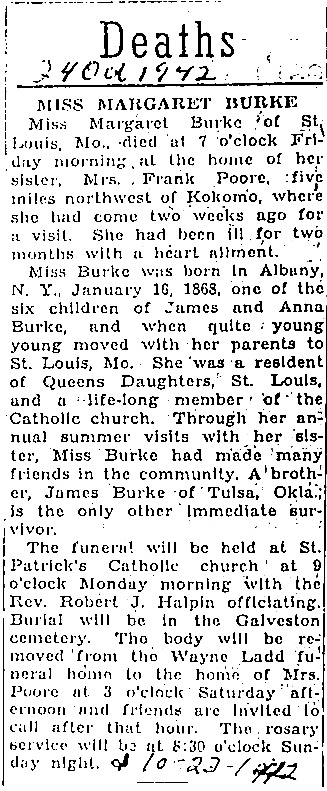BURKEMargaret (Miss)   16 Jan 1868 23 Oct 1942 26 Oct 1942  74  2nd Add; Sec 1 146  5