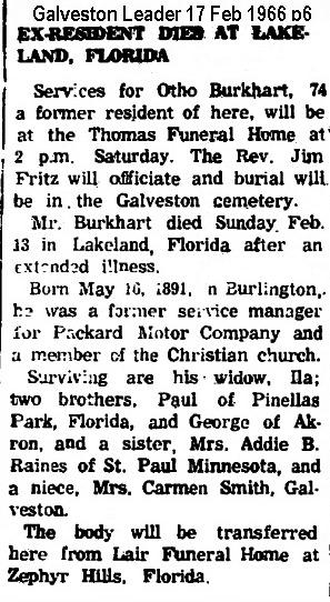 BURKHARTOtho    16 May 1891 13 Feb 1966 19 Feb 1966  74  4th Add; Sec 1 102  2