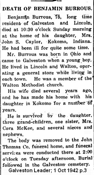 BURROUSBenjamin Edward    14 May 1867 27 Sep 1942 29 Sep 1942  75  Old Add 198  4