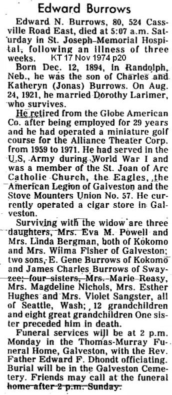 BURROUSOtis W.    17 Jun 1885 8 Jul 1960 11 Jul 1960  75  3rd Add; Sec 1 069  1