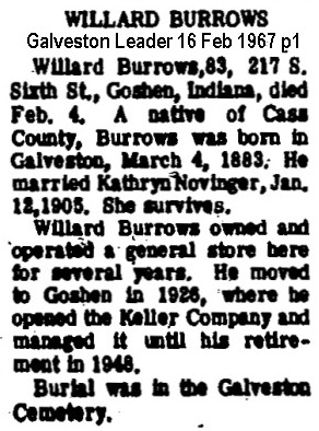 BURROWSWillard    4 Mar 1883 4 Feb 1967 6 Feb 1967  83  1st Add; Sec 1 042  2