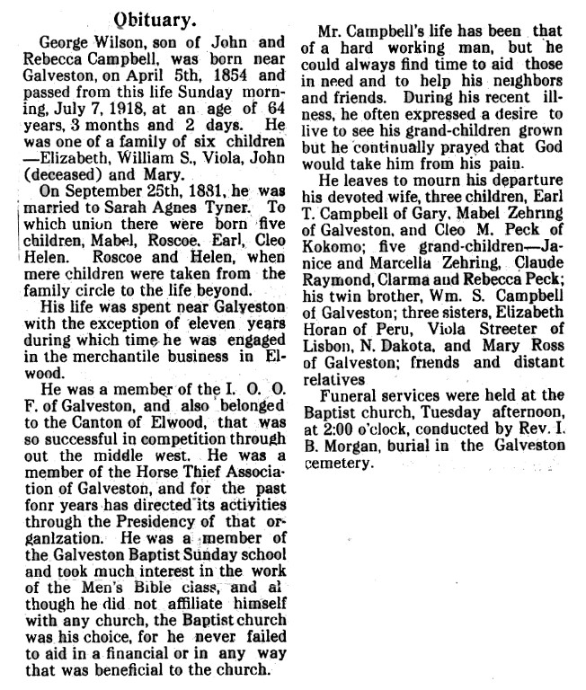 CAMPBELLGeorge Wilson    5 Apr 1854 7 Jul 1918 8 Jul 1918  64  1st Add 62  1 & 2