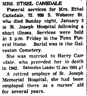 CANSDALEEthel M.    18 May 1893 2 Jan 1966 7 Jan 1966  72  Old Add 155  5