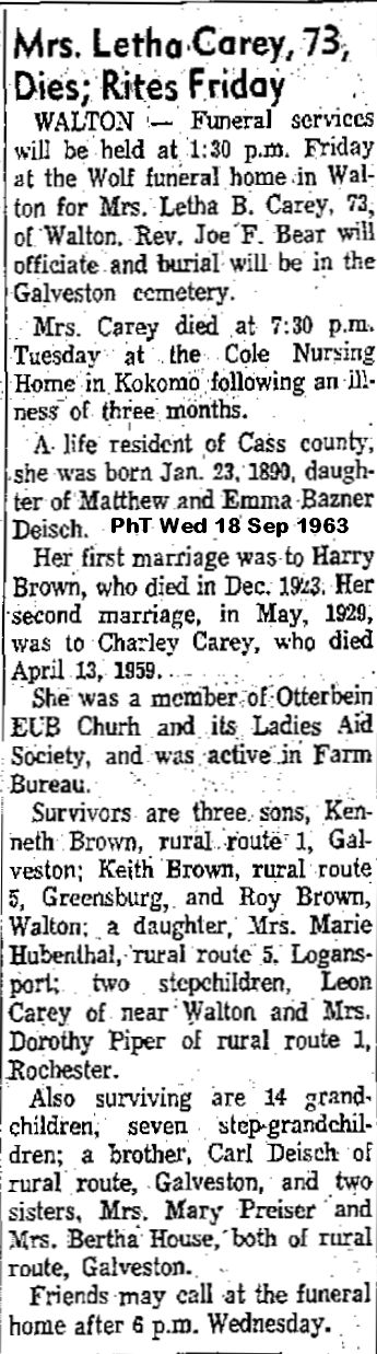 CAREYLetha Brown    23 Jan 1890 17 Sep 1963 20 Sep 1963  73  2nd Add; Sec 1 155  2