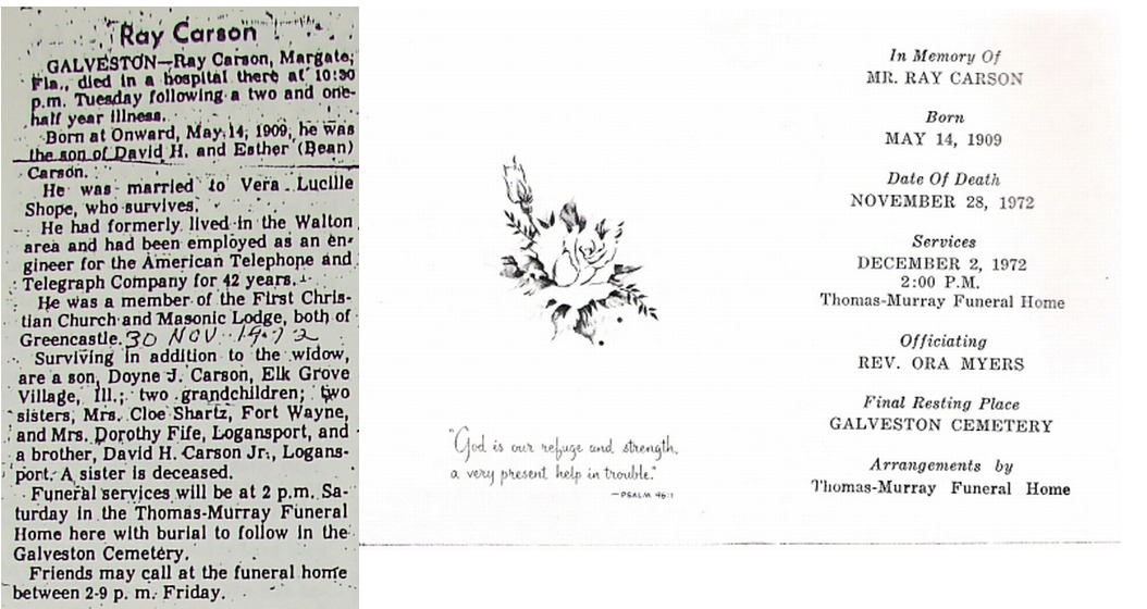 CARSONRay    14 May 1909 28 Nov 1972 2 Dec 1972  63  4th Add; Sec 1 095  1