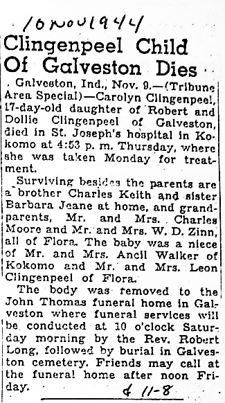 CLINGENPEELCarolyn    23 Oct 1944* 9 Nov 1944 11 Nov 1944  17 da  3rd Add; Sec 1 242  1