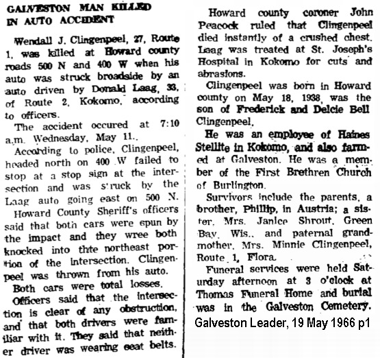 CLINGENPEELWendell    18 May 1938 11 May 1966 14 May 1966  27  4th Add; Sec 2 047  4