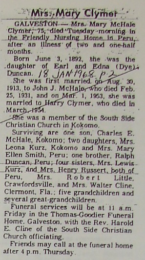 CLYMERMary McHale    3 Jun 1892 16 Jan 1968 19 Jan 1968  75  2nd Add; Sec 1 175  3
