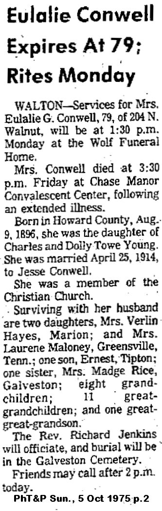 CONWELLEulalie G.    9 Aug 1896 3 Oct 1975 6 Oct 1975  79  4th Add; Sec 2 023  2