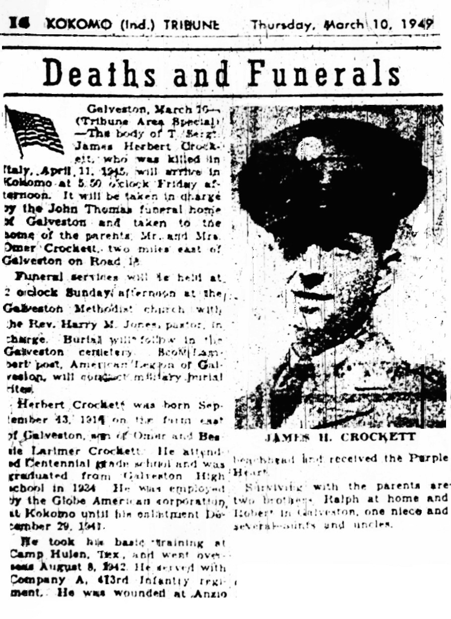 CROCKETTJames Herbert    13 Sep 1916 11 Apr 1945 14 Mar 1949 WWII 28  3rd Add; Sec 1 032  3