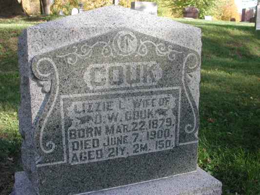 COOKElizabeth Kelley    22 Jul 1845 10 Aug 1921   76  Old Add 222  4