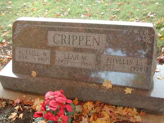 CRIPPENLeah Marie  Wilson  11 Sep 1903 19 Aug 1986 22 Aug 1986  82  2nd Add; Sec 1 145  2