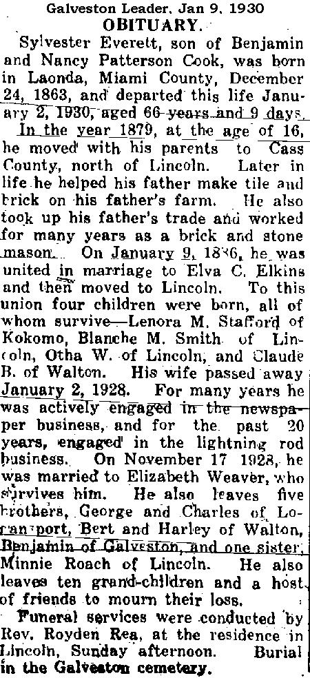 COOKSylvester Everett    24 Dec 1863 2 Jan 1930 5 Jan 1930  66  1st Add; Sec 1 149  2