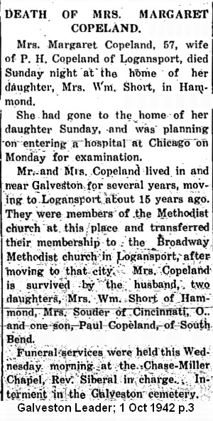 COPELANDMargaret Hester    1875 27 Sep 1942 30 Sep 1942  57  3rd Add; Sec 1 191  1