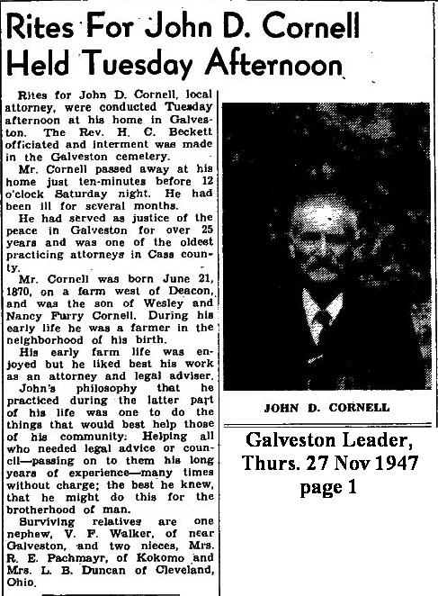 CORNELLJohn Dell (Judge)   21 Jun 1870 23 Nov 1947 25 Nov 1947  77  3rd Add; Sec 1 132  1