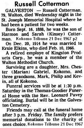 COTTERMANRussell L.    16 Sep 1888 20 Dec 1967 23 Dec 1967  79  4th Add; Sec 1 111  3