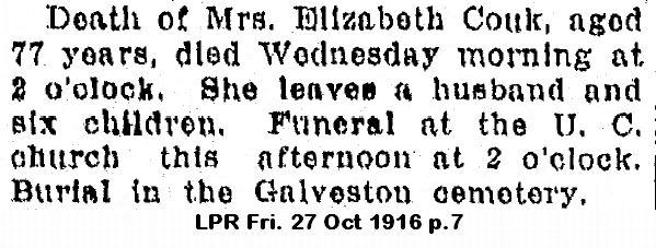COUKEliza Jane  Davison  16 Jun 1839 24 Oct 1916 27 Oct 1916  77  Old Add 090  1