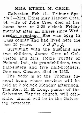 CRITESMary D.    1878 22 Jul 1936 25 Jul 1936  59  3rd Add; Sec 1 039  1
