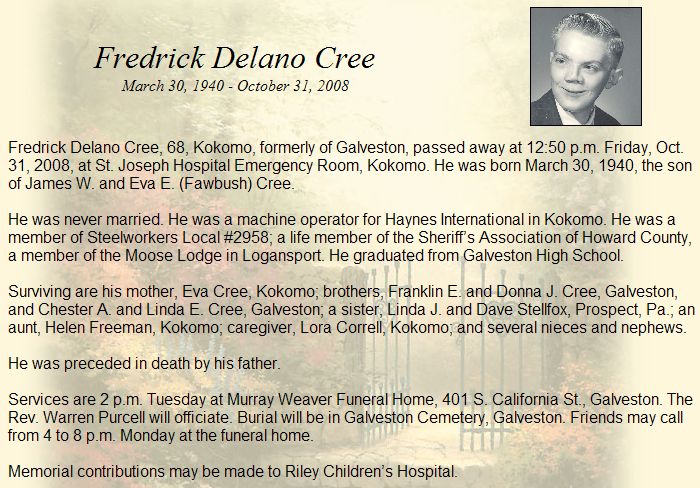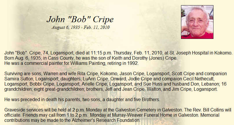 CRIPELarry D. "Butch"   17 Mar 1945 27 Jul 1993 29 Jul 1993 IN National Guard 48  Midway Add; Sec 1 006  3