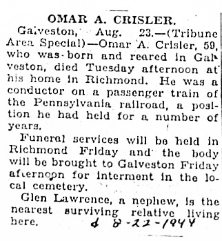 CRISLEROmar Arthur    23 Jun 1885 22 Aug 1944 25 Aug 1944  59  Old Add 304  3
