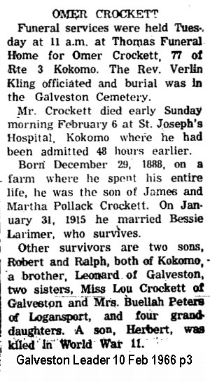 CROCKETTOmer    29 Dec 1888 6 Feb 1966 8 Feb 1966  77  3rd Add; Sec 1 032  2