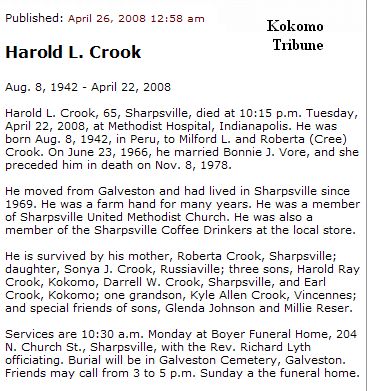 CROOKHarold L.    8 Aug 1942 22 Apr 2008   65