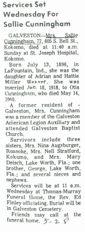 CUNNINGHAMSallie  Weaver  13 Jul 1896 26 May 1974 29 May 1974  77  1st Add; Sec 1 105  2
