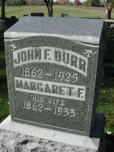 DURRJohn F.    27 Aug 1862 10 Dec 1925 13 Dec 1925  63  1st Add; Sec 1 115  1