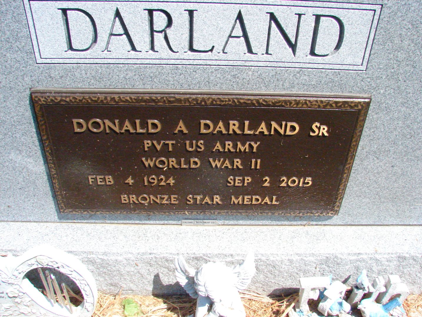 DARLANDDonald A (Sr)   4 Feb 1924 2 Sep 2015 5 Sep 2015 US Army WWII 91  4th Add; Sec 2 103  1