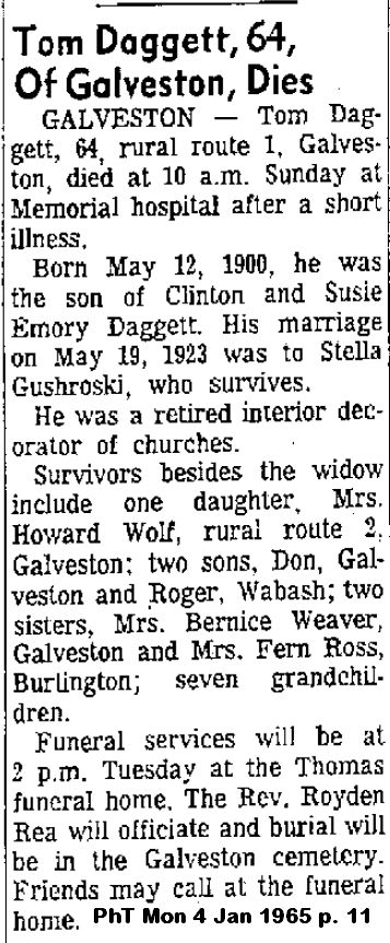 DAGGETTThomas Miller "Tom"    12 May 1900 3 Jan 1965 5 Jan 1965  64  Old Add 340  4