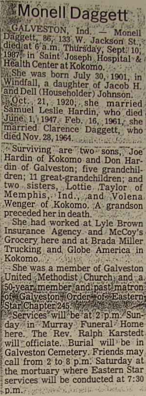 DAGGETTLeah Monelle Hardin Johnson  30 Jul 1901 10 Sep 1987 13 Sep 1987  86  3rd Add; Sec 1 148  3