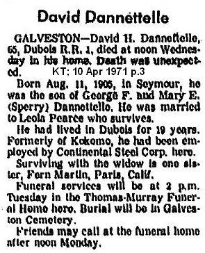 DANNETTELLEDavid    11 Aug 1905 7 Apr 1971 13 Apr 1971  65  3rd Add; Sec 1 209  4