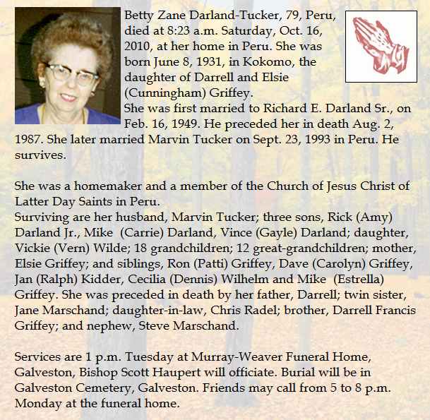 DARLAND-TUCKERBetty Zane  Griffey  8 Jun 1931 16 Oct 2010 19 Oct 2010  79  3rd Add; Sec 1 232  6