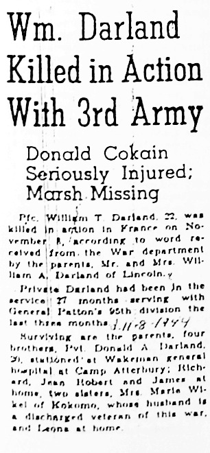 DARLANDWilliam Truman    4 Feb 1922 8 Nov 1944 15 Sep 1948 WWII NR. Metz, France KIA 22  3rd Add; Sec 1 232  3