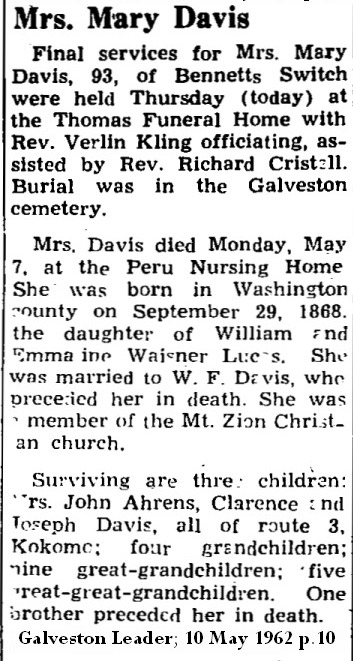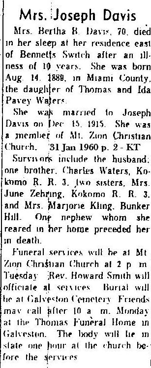 DAVISBertha B.  Waters  14 Aug 1889 30 Jan 1960 2 Feb 1960  70  3rd Add; Sec 1 153  6