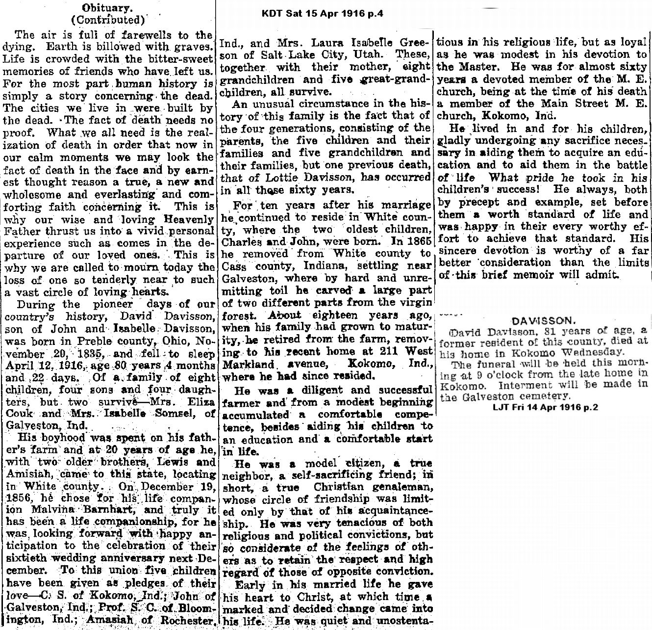DAVISKit Clyde    14 Oct 1871 10 Apr 1944 12 Apr 1944  72  2nd Add; Sec 1 192  2
