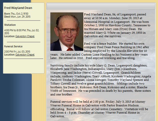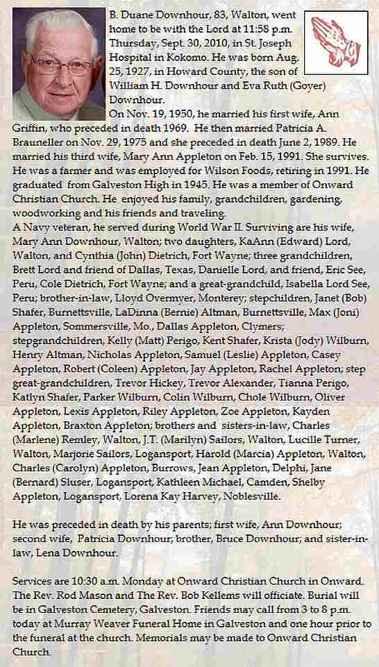 DOWNHOURWilliam Dean    1 Feb 1944 18 Oct 2013 22 Oct 2013 US Army, IN. Guard & Air Force Res. 69  5th Add; Sec 1 152  4