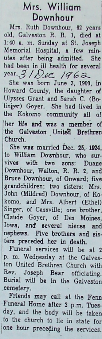 DOWNHOUREva Ruth    3 Jun 1900 30 Dec 1962 2 Jan 1963  62  4th Add; Sec 1 106  1