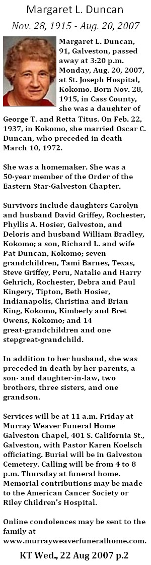 DUNCANMargaret    28 Nov 1915 20 Aug 2007   91  Midway Add; Sec 1 011
