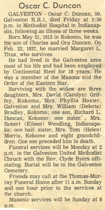 DUNCANOscar C.    31 May 1913 10 Mar 1972 13 Mar 1972  58  Midway Add; Sec 1 011  1